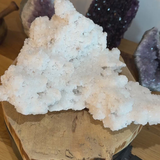 Mit seiner Größe und funkelnden Ausstrahlung ist dieser Aragonit nicht nur ein dekoratives Highlight, sondern auch ein einzigartiges Sammlerstück. Ein ideales Geschenk für alle, die die Schönheit und Symbolkraft von Mineralien lieben.