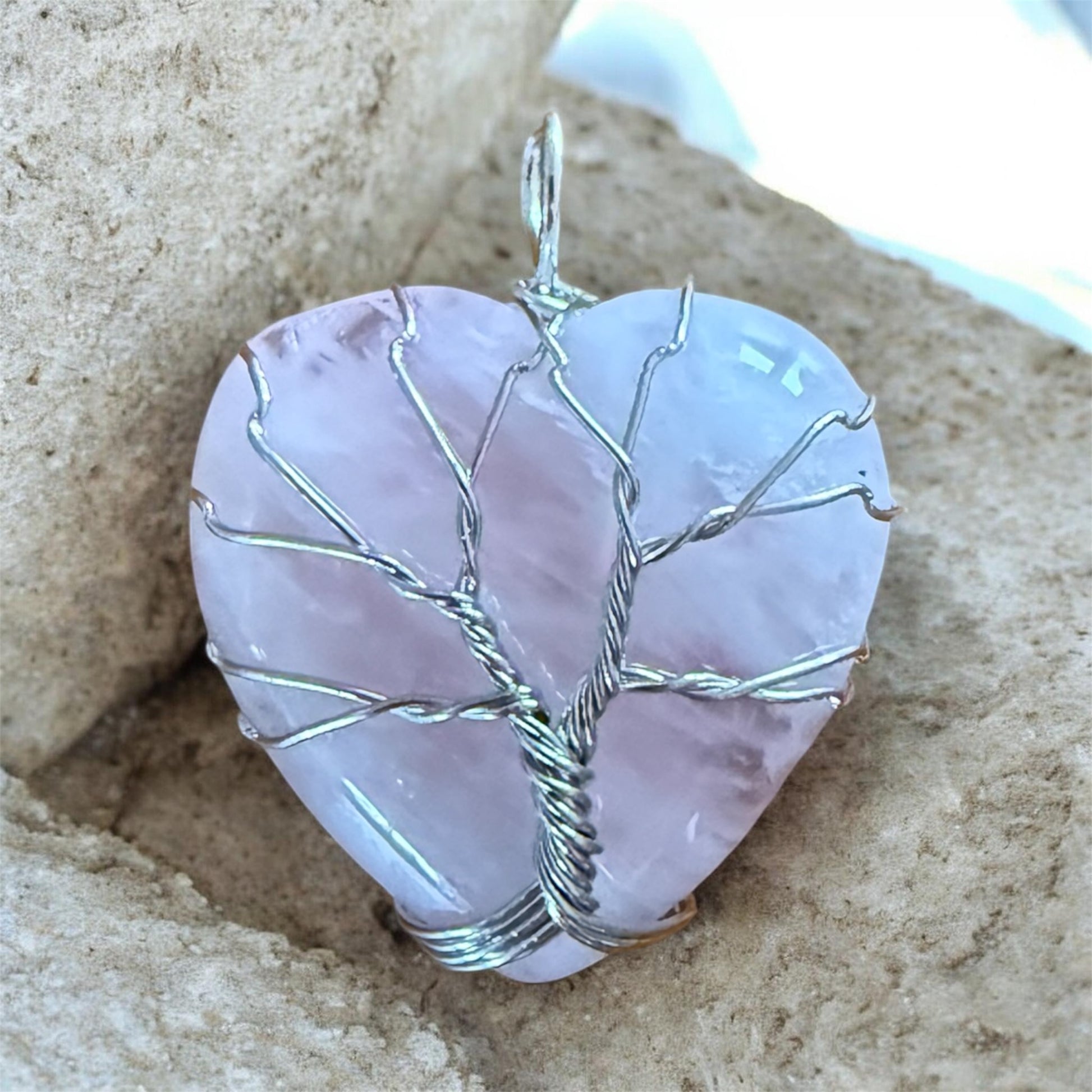 ROSENQUARZ Anhänger Herz in Draht silberfarben