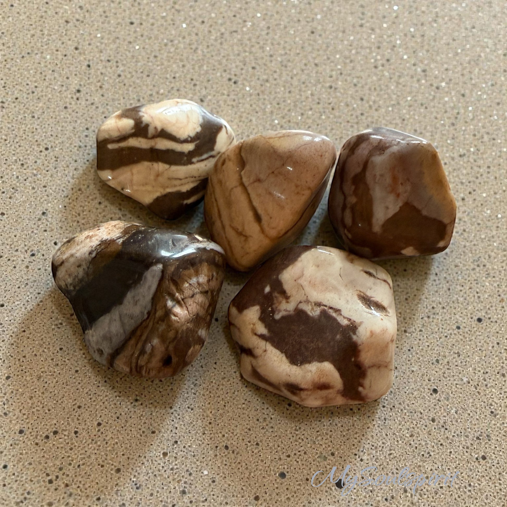 Der Cappuccino Jaspis begeistert mit seinen sanften Beige-, Creme- und Brauntönen, die an Wärme, Bodenständigkeit und Geborgenheit erinnern. Seine ruhige Ausstrahlung macht ihn zu einem geschätzten Begleiter für bewusste Momente und einen geerdeten Alltag.