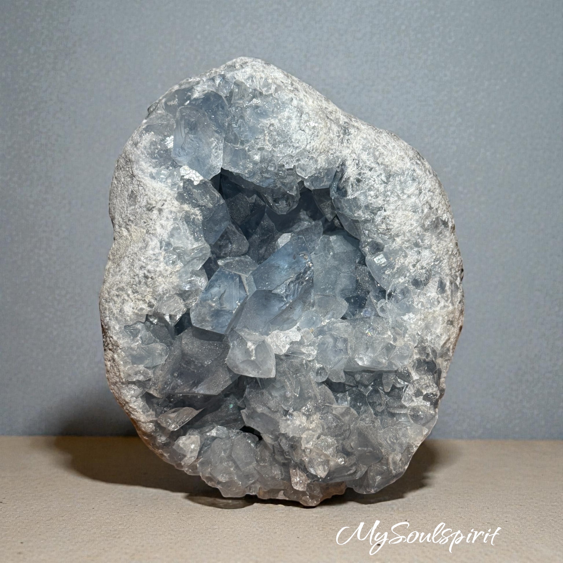 Blauer Coelestin hat diese zarte, fast himmlische Ausstrahlung, die sofort Ruhe in den Raum bringt. Viele Menschen verbinden ihn mit innerer Klarheit, Weite und einem Gefühl von „leichter werden“ – genau diese sanfte Stimmung trägt dieser Kristall in sich.